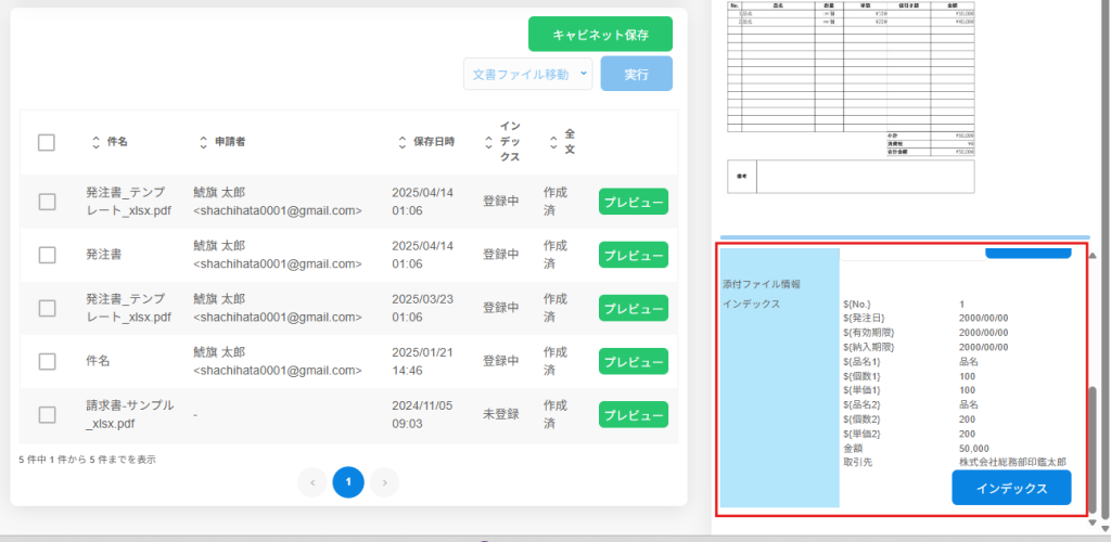 4長期保存キャビネットのプレビュー画面からインデックスの登録・更新