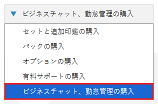 2.プルダウンメニューから[ビジネスチャット・勤怠管理の購入]を選択します。