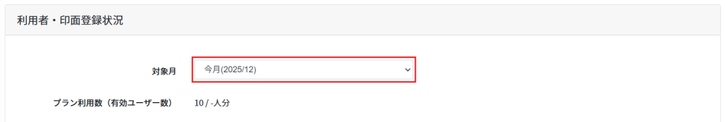 2.「利用者・印面登録状況」の[対象月]から確認したい月を選択します。
