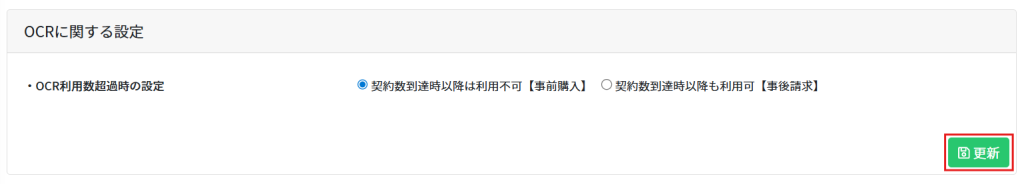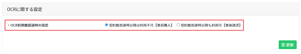 AI-OCRの月次利用回数の確認および、契約数を超過した場合の動作設定を行うことができます。