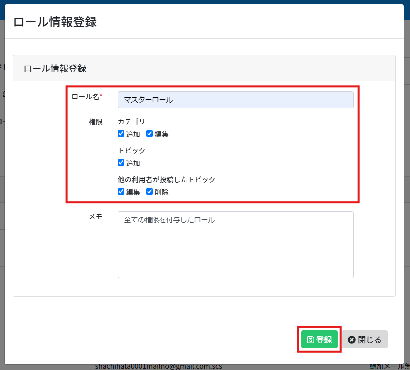 ロールを作成し、利用者に割り当てることで、掲示板の利用権限を柔軟に管理できます。