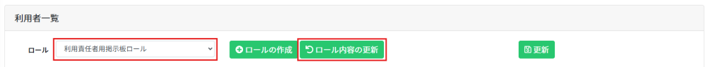 2.ロールメニュー から編集したいロールを選択し、[ロール内容の更新] をクリックします。