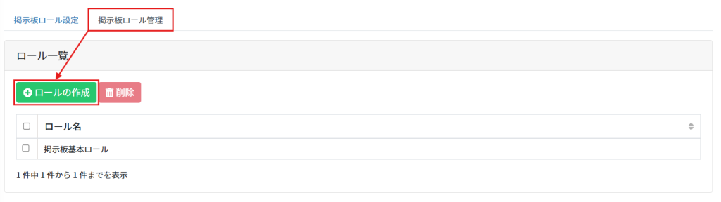 2.[掲示板ロール管理]を開き、[ロールの作成]をクリックします。