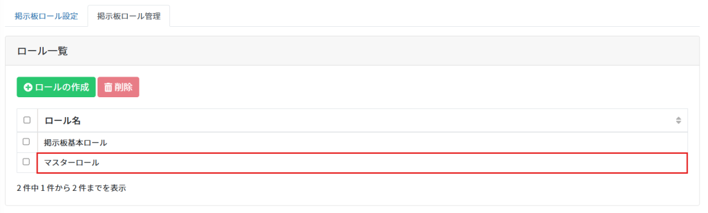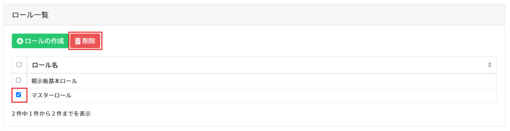 1.[掲示板ロール管理]画面のロール一覧から削除するロールを選択します。