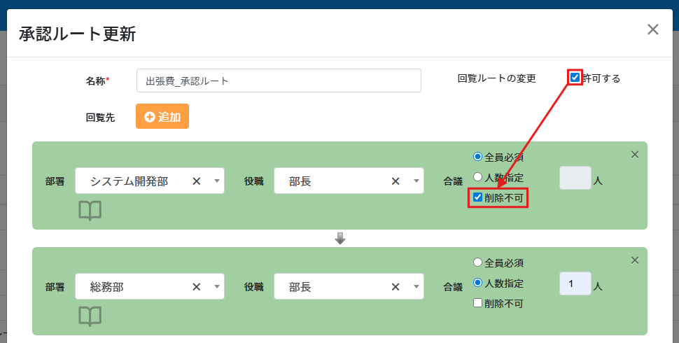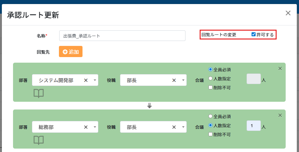 「回覧ルートの変更」が有効のときのみ設定できます。