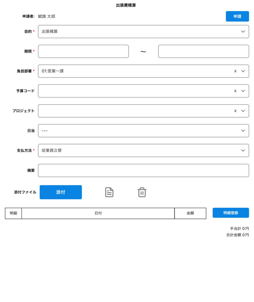 経費申請をご契約の場合、スマホアプリを使って出張費の申請が可能です。