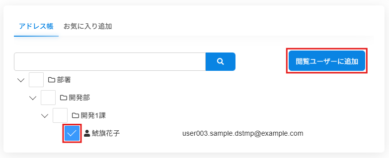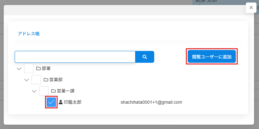2.[アドレス帳]を開き、追加したいユーザーにチェックを入れ、[閲覧ユーザーに追加]をクリックします。