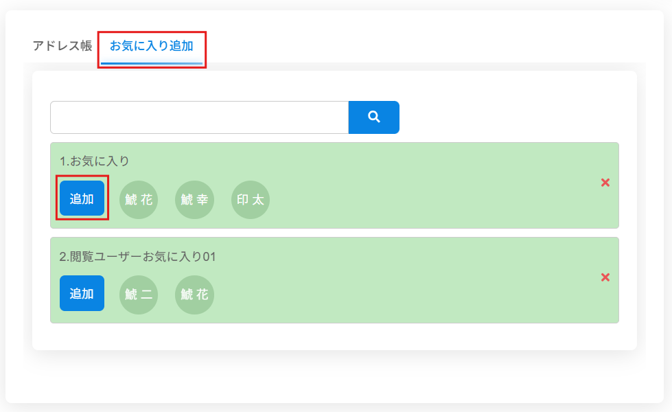 2.[お気に入り]を開き、追加したいユーザーにチェックを入れ、[追加]をクリックします。