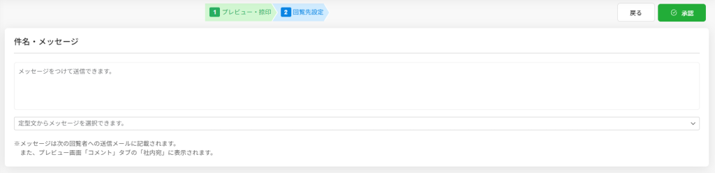 文書を開き、プレビュー・捺印画面の[次へ]をクリックすると、回覧先設定画面が表示されます。