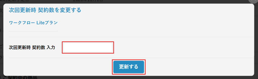 3.次回更新時の契約数を入力し、[更新する]をクリックします。