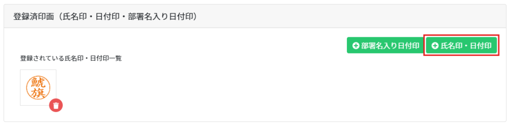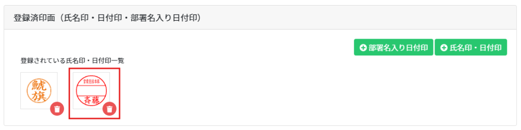 7.印面登録後、登録済印面欄に印面が表示されます。