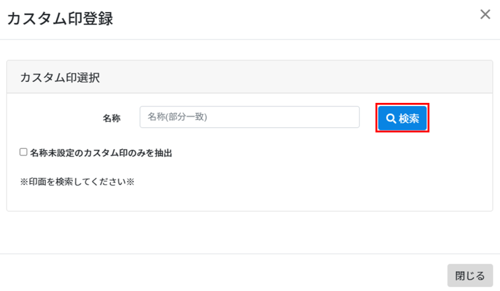 「名称未設定のカスタム印のみを抽出」にチェックを入れると名称を設定していないカスタム印のみを検索できます。