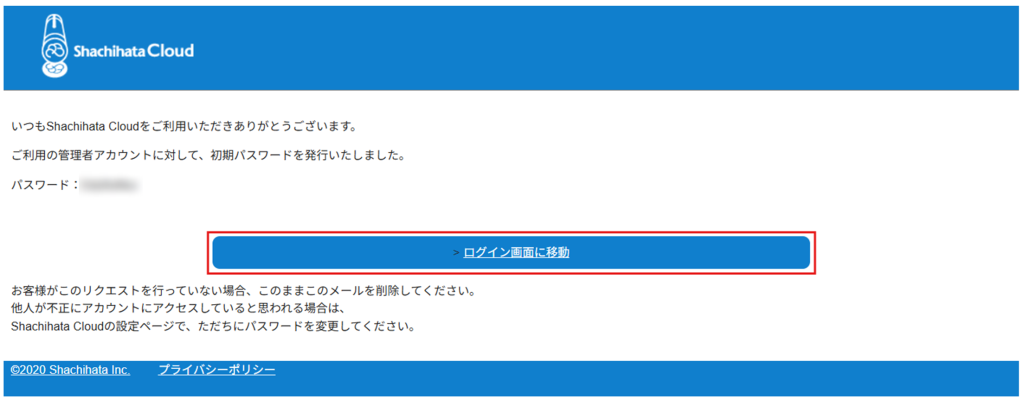 ※あらかじめ利用者にShachihata Cloudより初期パスワードのお知らせメールが届く旨の連絡をおすすめいたします。