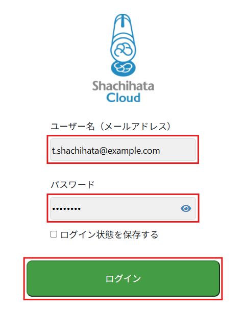 2.ユーザー名(メールアドレス)と初期パスワードを入力し、[ログイン]をクリックします。