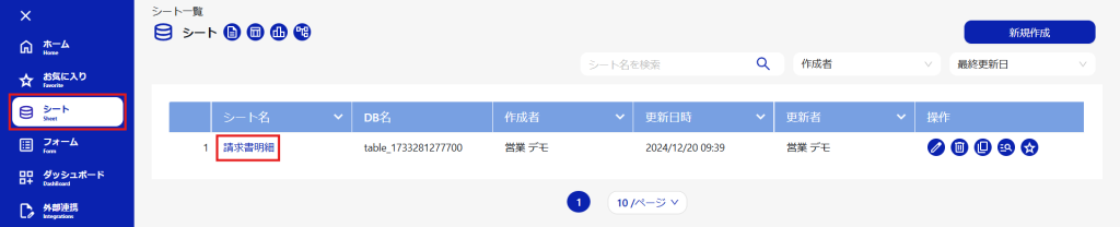 キー項目の設定は、シート作成時にプロパティ設定から行えます。