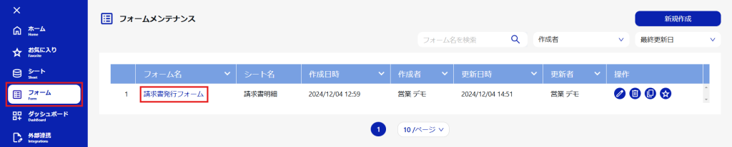 1.[フォーム]を開き、対象のフォーム名をクリックします。