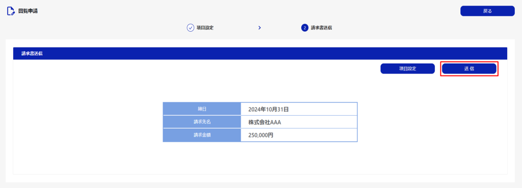 請求書の送信が完了します。送信済みの請求書は、Smartec Visionの「帳票発行一覧」またはShachihata Cloudの「送信一覧」(承認後は「完了一覧」)で確認できます。