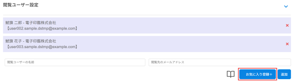 1.閲覧ユーザーを追加した後、[お気に入り登録+]をクリックします。
