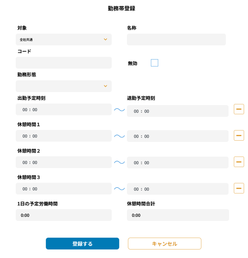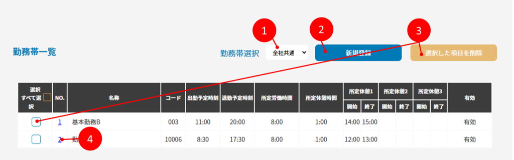 2 | 新規登録 | 勤務帯を新しく登録します。 |