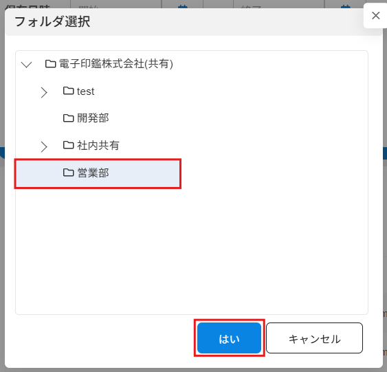3.保存したいフォルダを選択し、[はい]をクリックします。
