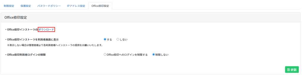 管理者が設定を許可している場合、利用者画面からもOffice捺印インストーラをダウンロード可能です。