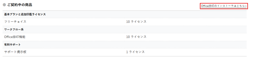 オプションを購入済みの場合、契約サイトよりOffice捺印インストーラをダウンロードできます。
