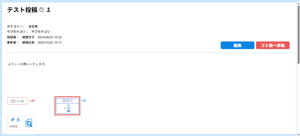 1.掲示板を開き、確認印を押すトピックを開きます。