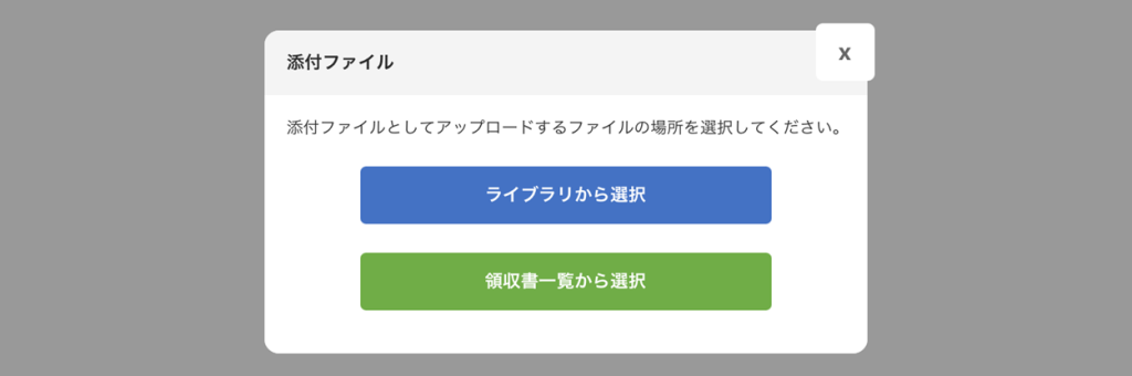 点線で囲まれたエリアをクリックし、[領収書一覧から選択]を選択します。