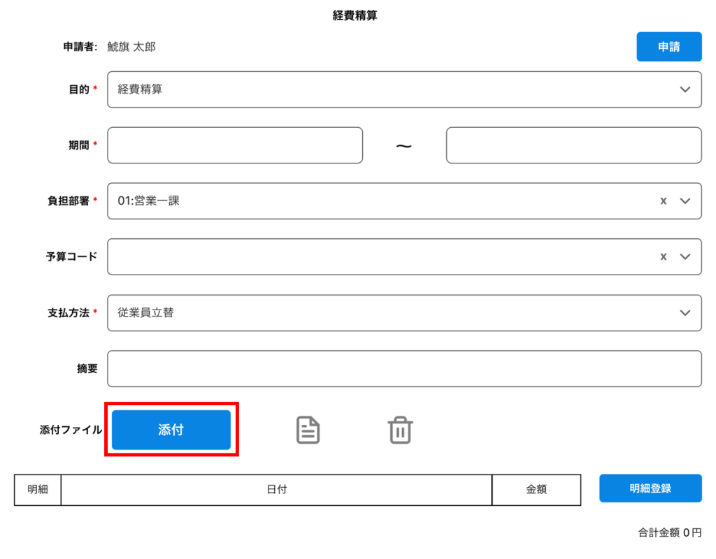 経費申請を行う際、証憑などのファイルを添付して申請をすることができます。