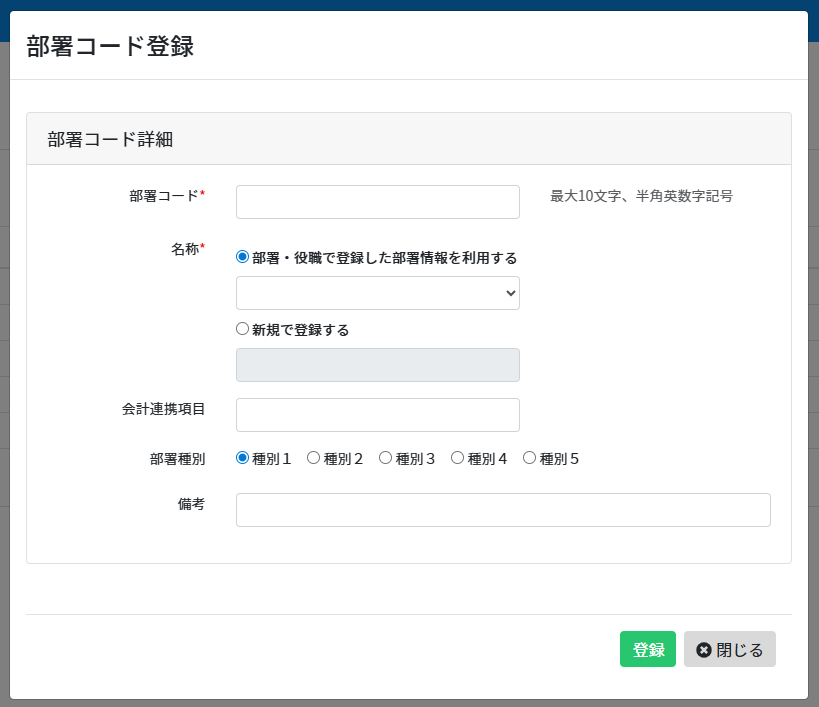4.部署コード詳細を設定し、[登録]をクリックします。