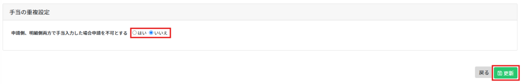 2.手当の重複設定を行い[更新]をクリックします。