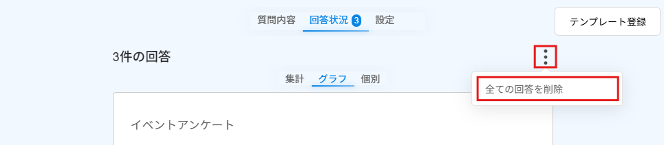 2.[⁝]メニューから「全ての回答を削除」をクリックします。
