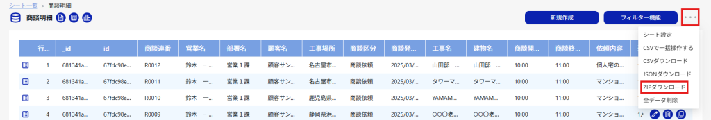 2.[⋯]>[ZIPダウンロード]をクリックします。
