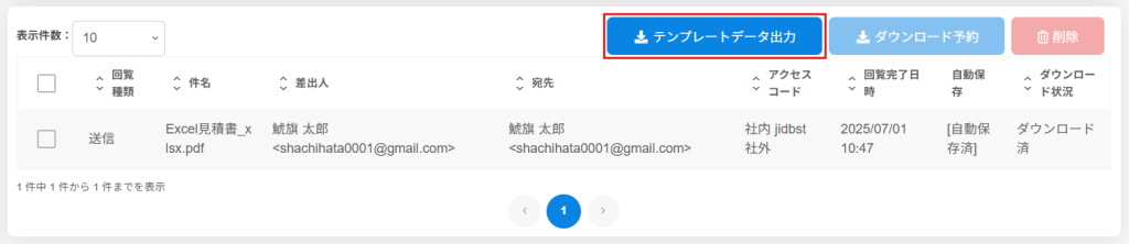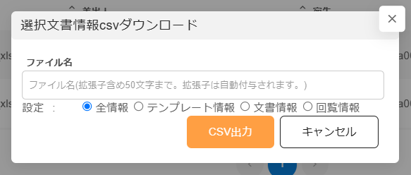 テンプレートを使用して作成された文書のテンプレートデータや回覧情報をCSV形式で出力できます。