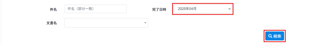 2.完了日時を設定し、[検索]をクリックします。