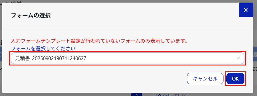 4.テンプレートと連携するフォームを選択し、[OK]をクリックします。