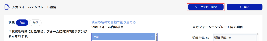5自動割り当て入力フォームテンプレート内の項目名とSVのフォーム内の項目が一致する場合、自動で割り当てられます。