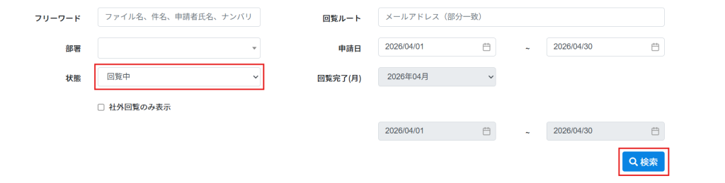 2.状態が「回覧中」の文書を検索します。