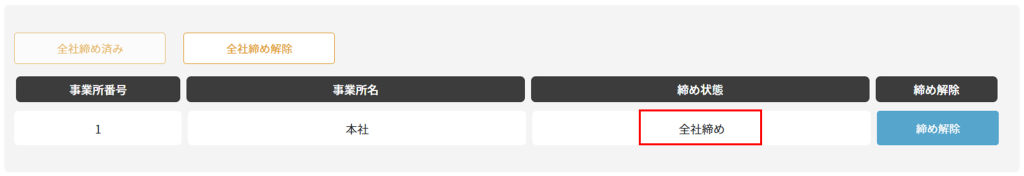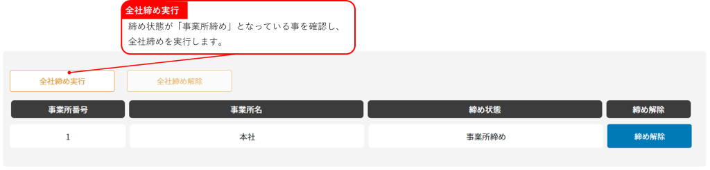 必ず時系列通りに 事業所締め→全社締めの順で行ってください